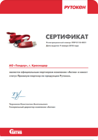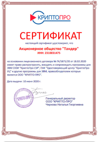 Удостоверяющий центр «Магнит» (АО «Тандер» ИНН 2310031475) имеет лицензию Федеральной Службы Безопасности (ЛСЗ №0011486 от 22.03.2017